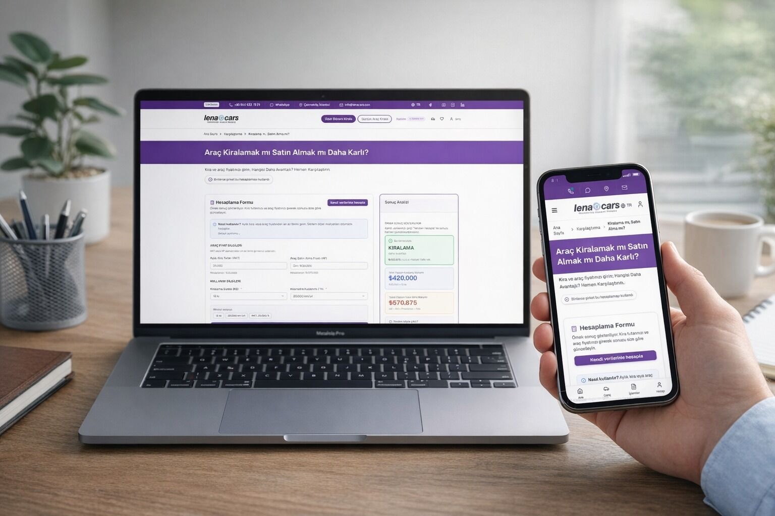 Lenacars.com üzerinden erişilebilen karşılaştırma aracı; kredi maliyetlerini, araç değer kaybını, operasyonel giderleri ve kiralama bedellerini tek bir hesaplama içinde değerlendirerek kullanıcıların daha bilinçli karar vermesini sağlıyor.